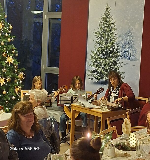 Nach dem Abendessen klang die Feier mit dem traditionellen gemeinsamen Singen von „Stille Nacht, heilige Nacht“ aus. So stimmten sich die Bewohner*innen und Gäste stimmungsvoll in die besinnliche Weihnachtszeit ein.