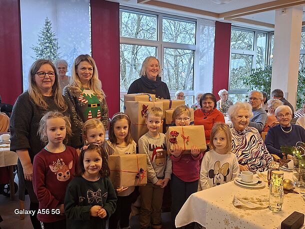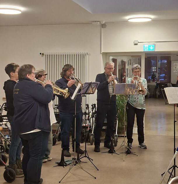 Weitere Höhepunkte waren der Auftritt der Kinder des Heilig-Geist-Kindergartens, die anschließend Weihnachtsgeschenke an die Senior*innen verteilten, sowie das Vorspiel des Posaunenchores Wildenreuth mit einem Mix aus bekannten Weihnachtsliedern.