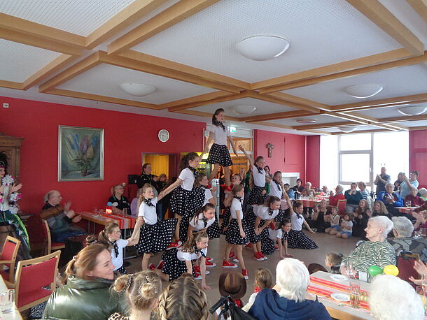 Auch der heutige VdK-Hutzernachmittag stand ganz im Zeichen des Karnevals. Die Kinder- und Jugendtanzgruppen des TSV Reuth begeisterten die Bewohner mit ihren Darbietungen. Die „Jelly Beans“, „Jumping Jills“ und „Jolly Dancers“ wurden für ihre Tänze mit viel Applaus belohnt. Zum Abschluss überreichte Prinzessin Alicia I. Orden an die VdK-Vorsitzende Angela Erfurt, an Pfarrer Hubert Bartel, dritte Bürgermeisterin Brigitte Kreinhöfner, die Heimbeiratsvorsitzenden Erika Fuchs und Marianne Meiler sowie an Einrichtungsleiter Christain Reuter.