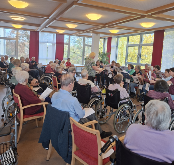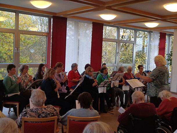 Einrichtungsleiter Christian Reuter dankte der Dirigentin Lydia Meißner und den 14 Musikerinnen herzlich für den gelungenen Auftritt und lud alle zu Kaffee und Kuchen ein – wo der musikalisch beschwingte Nachmittag in gemütlicher Runde ausklang.