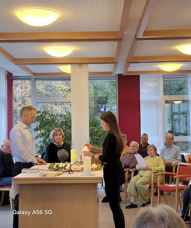 Während der Andacht verlas Einrichtungsleiter Christian Reuter die Namen aller Verstorbenen - und die anwesenden Angehörigen sowie Sozialdienstmitarbeiterin Margot Otto entzündeten für jeden eine Kerze am Altar - ein berührender Moment des Innehaltens und der Erinnerung.