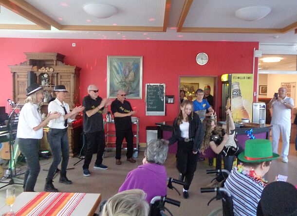 Für musikalische Höhepunkte sorgte die Band „Die Lumpis“, die mit schwungvollen Liedern und bekannten Stimmungshits die zahlreichen Gäste zum Mitsingen, zum Tanzen und Schunkeln brachte. Die Partyband hat übrigens eine ganz besondere Verbindung zum Haus: Vor genau 20 Jahren wurde sie zum Hausfasching im AWO Seniorenheim gegründet.