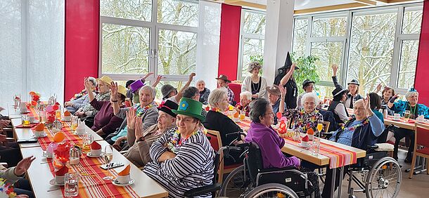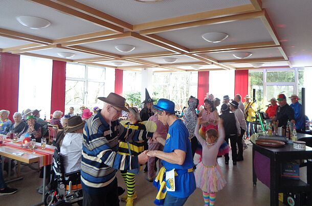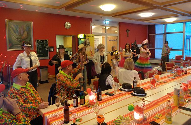 Im Anschluss an das offizielle Programm wurde beim Mitarbeiter-Fasching fröhlich weiter getanzt, gegessen, gesungen und gelacht – inklusive einer unterhaltsamen Büttenrede des Einrichtungsleiters.